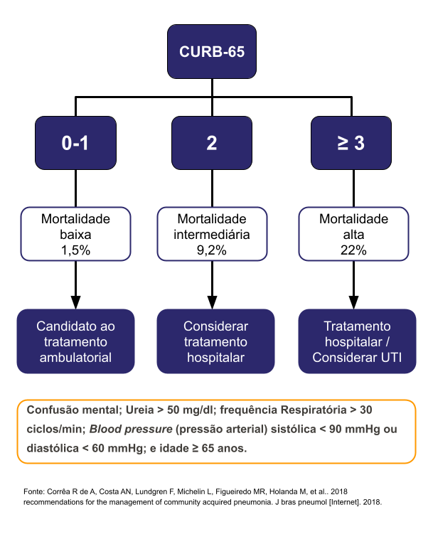 - Corrêa R de A, Costa AN, Lundgren F, Michelin L, Figueiredo MR, Holanda M, et al.. 2018 recommendations for the management of community acquired pneumonia. J bras pneumol [Internet]. 2018 Sep;44(5):405–23. Available from: https://doi.org/10.1590/S1806-37562018000000130.