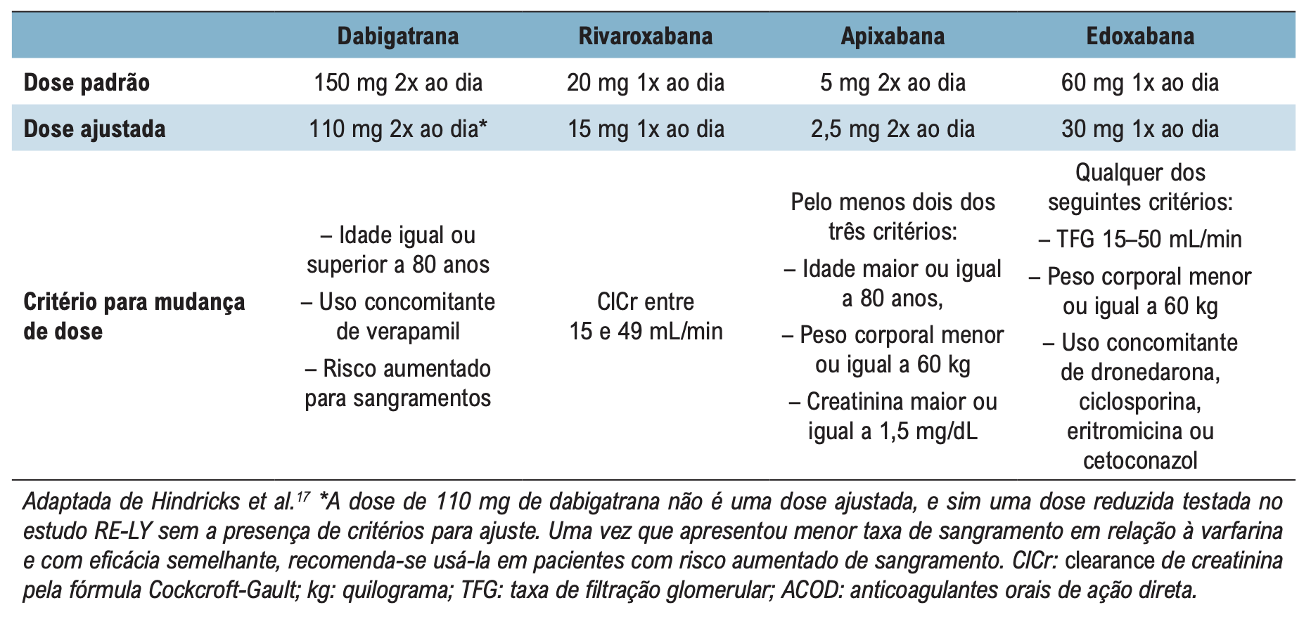 - Se paciente com DRC, ajustar doses dos anticoagulantes de acordo com função renal.
