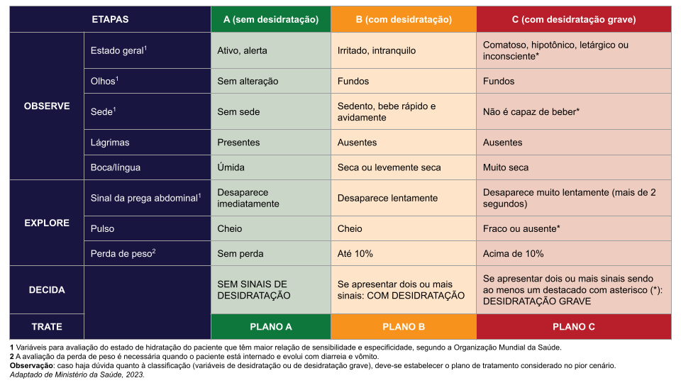 Ministério da Saúde. Manejo do paciente com diarreia: avaliação do estado de hidratação do paciente. 2023.